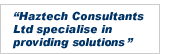 Haztech Consultants Ltd specialise in providing solutions and support in dealing with safety and environmental issues and legislative compliance.